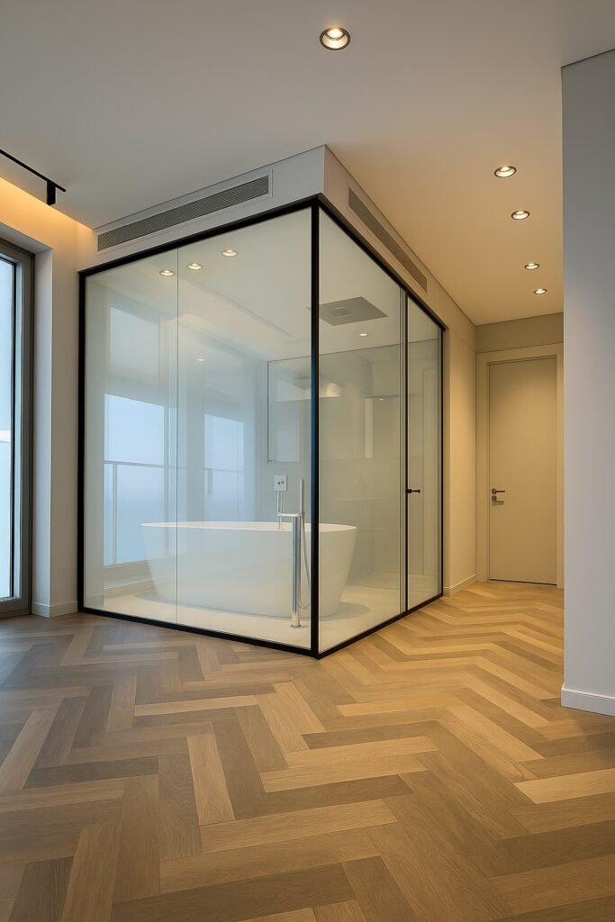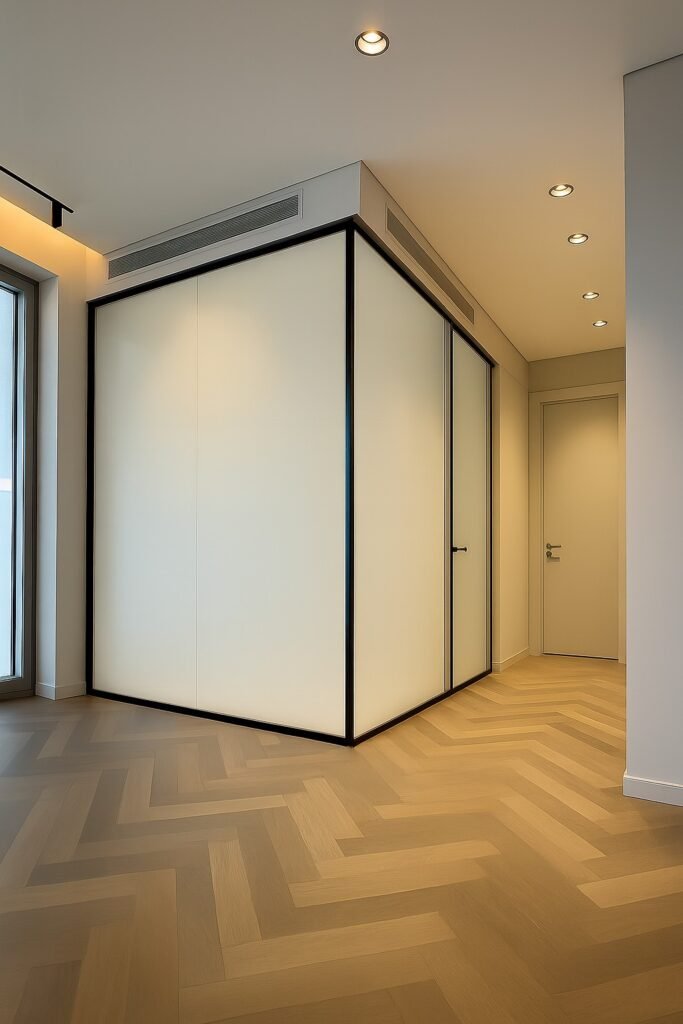 מחיצות הזכוכית של GLASSIUM מיוצרות לפי מידה, עם תכנון מותאם אישית לכל חלל – במטרה לשלב בין פרקטיקה, עיצוב ואור טבעי.